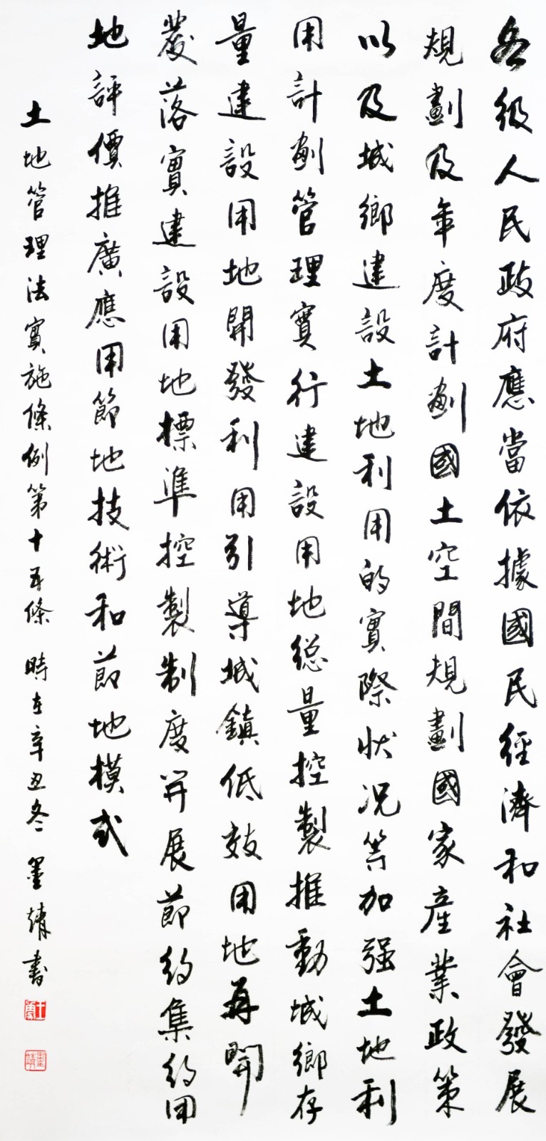 繼1600余位書法家參與書寫《中華人民共和國(guó)民法典》全部1260條法條之后,法治日?qǐng)?bào)社聯(lián)合自然資源部法規(guī)司、自然資源部書畫研究會(huì)和北京昌平書法家協(xié)會(huì),將筆端對(duì)準(zhǔn)土地管理“一法一條例”,即《中華人民共和國(guó)土地管理法》和《中華人民共和國(guó)土地管理法實(shí)施條例》。
