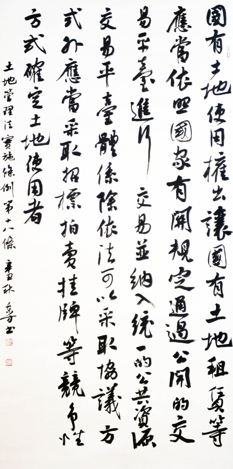 繼1600余位書法家參與書寫《中華人民共和國民法典》全部1260條法條之后,法治日報社聯(lián)合自然資源部法規(guī)司、自然資源部書畫研究會和北京昌平書法家協(xié)會,將筆端對準(zhǔn)土地管理“一法一條例”,即《中華人民共和國土地管理法》和《中華人民共和國土地管理法實施條例》。