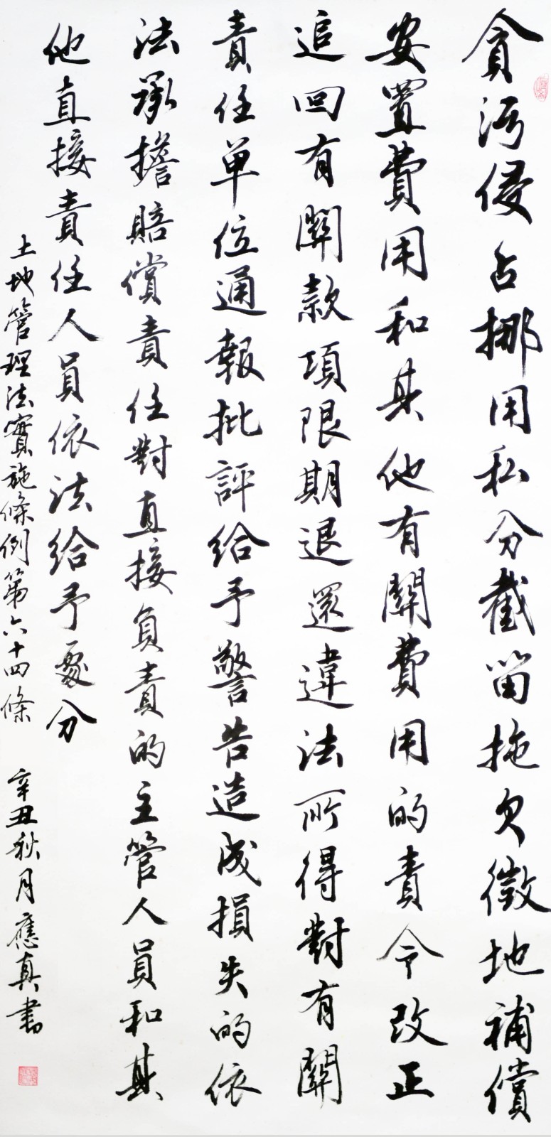 繼1600余位書法家參與書寫《中華人民共和國民法典》全部1260條法條之后,法治日報社聯(lián)合自然資源部法規(guī)司、自然資源部書畫研究會和北京昌平書法家協(xié)會,將筆端對準土地管理“一法一條例”,即《中華人民共和國土地管理法》和《中華人民共和國土地管理法實施條例》。