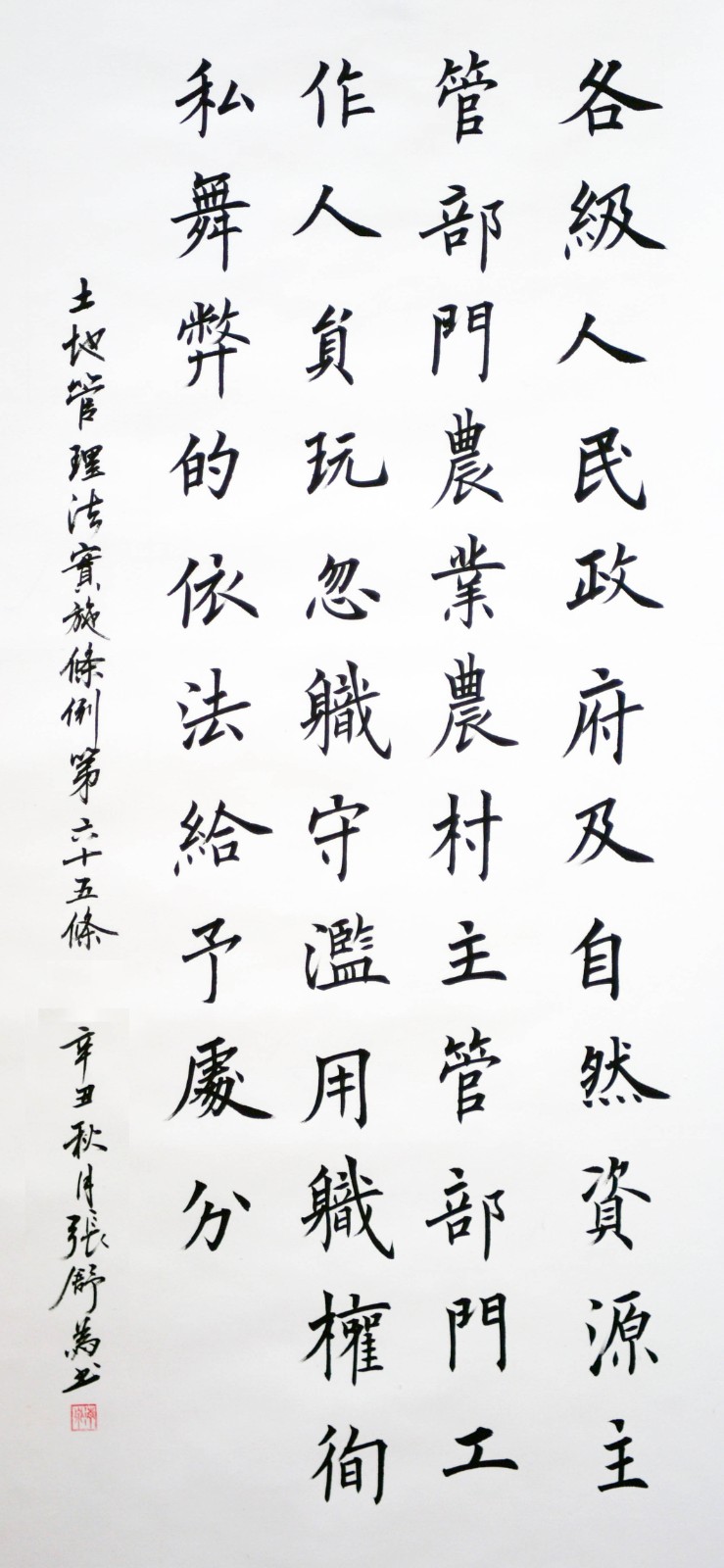 繼1600余位書法家參與書寫《中華人民共和國民法典》全部1260條法條之后,法治日報社聯(lián)合自然資源部法規(guī)司、自然資源部書畫研究會和北京昌平書法家協(xié)會,將筆端對準土地管理“一法一條例”,即《中華人民共和國土地管理法》和《中華人民共和國土地管理法實施條例》。