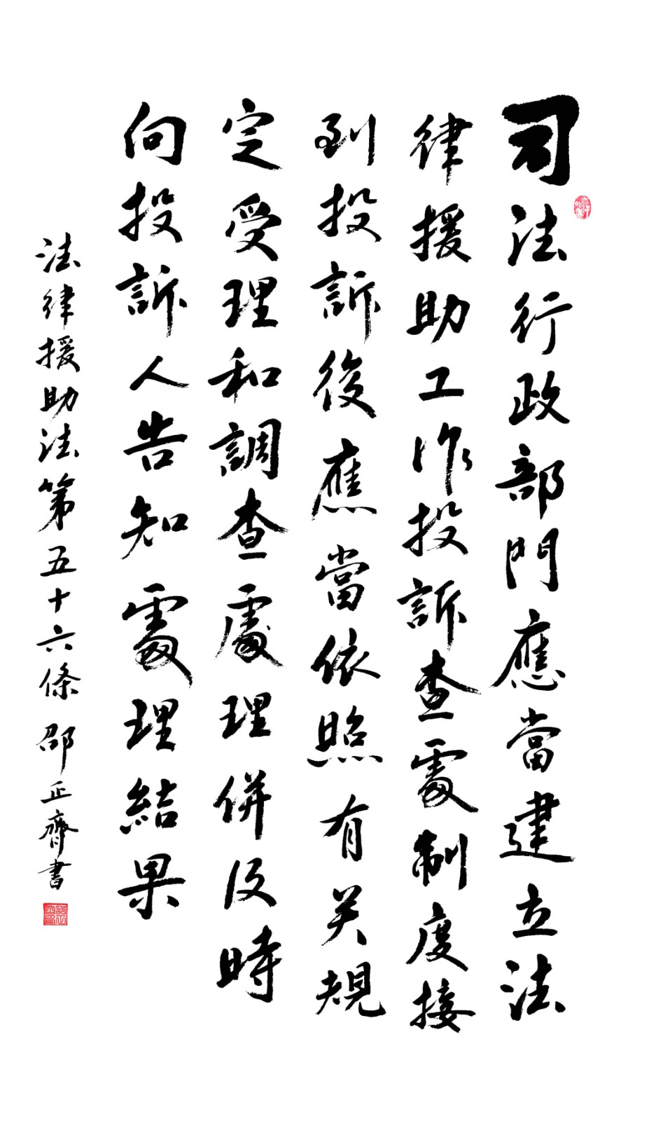 法律援助法第五十六條 司法行政部門應(yīng)當建立法律援助工作投訴查處制度;接到投訴后,應(yīng)當依照有關(guān)規(guī)定受理和調(diào)查處理,并及時向投訴人告知處理結(jié)果。