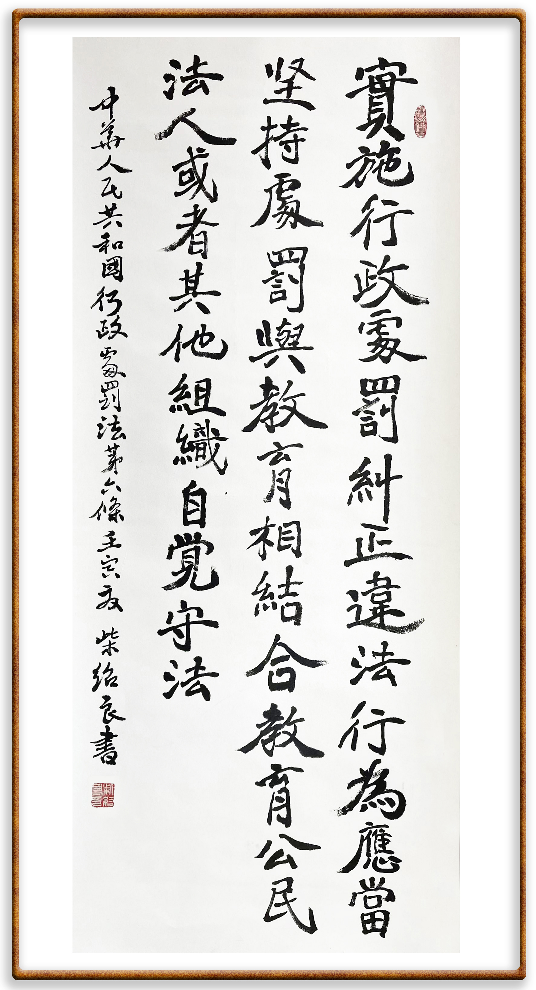 繼《中華人民共和國(guó)民法典》《中華人民共和國(guó)土地管理法》《中華人民共和國(guó)土地管理法實(shí)施條例》《中華人民共和國(guó)法律援助法》之后,法治日?qǐng)?bào)社聯(lián)合北京市司法局、北京書(shū)法家協(xié)會(huì),將筆端對(duì)準(zhǔn)《中華人民共和國(guó)憲法》和《中華人民共和國(guó)行政處罰法》。