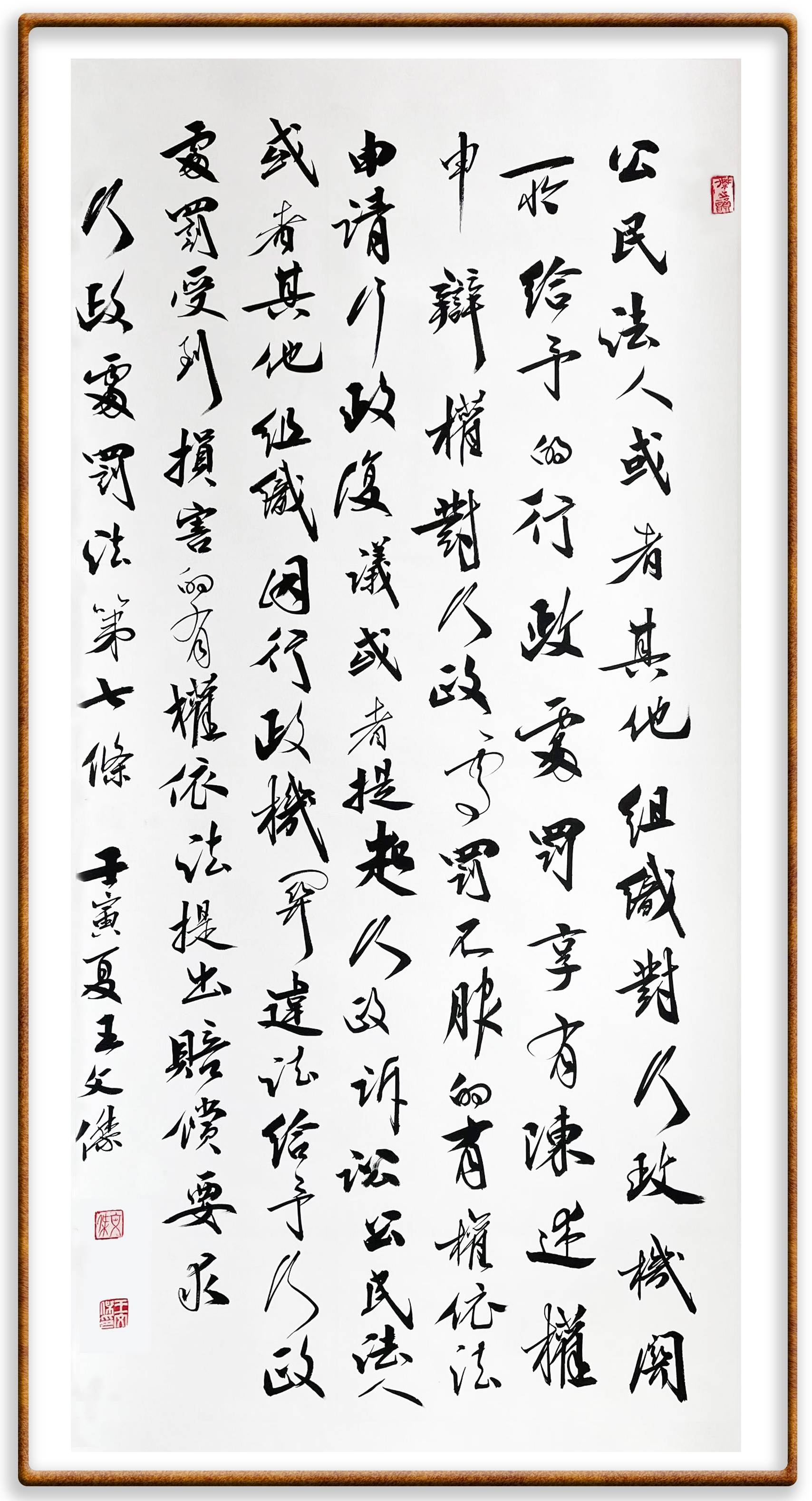繼《中華人民共和國民法典》《中華人民共和國土地管理法》《中華人民共和國土地管理法實施條例》《中華人民共和國法律援助法》之后,法治日報社聯(lián)合北京市司法局、北京書法家協(xié)會,將筆端對準(zhǔn)《中華人民共和國憲法》和《中華人民共和國行政處罰法》。