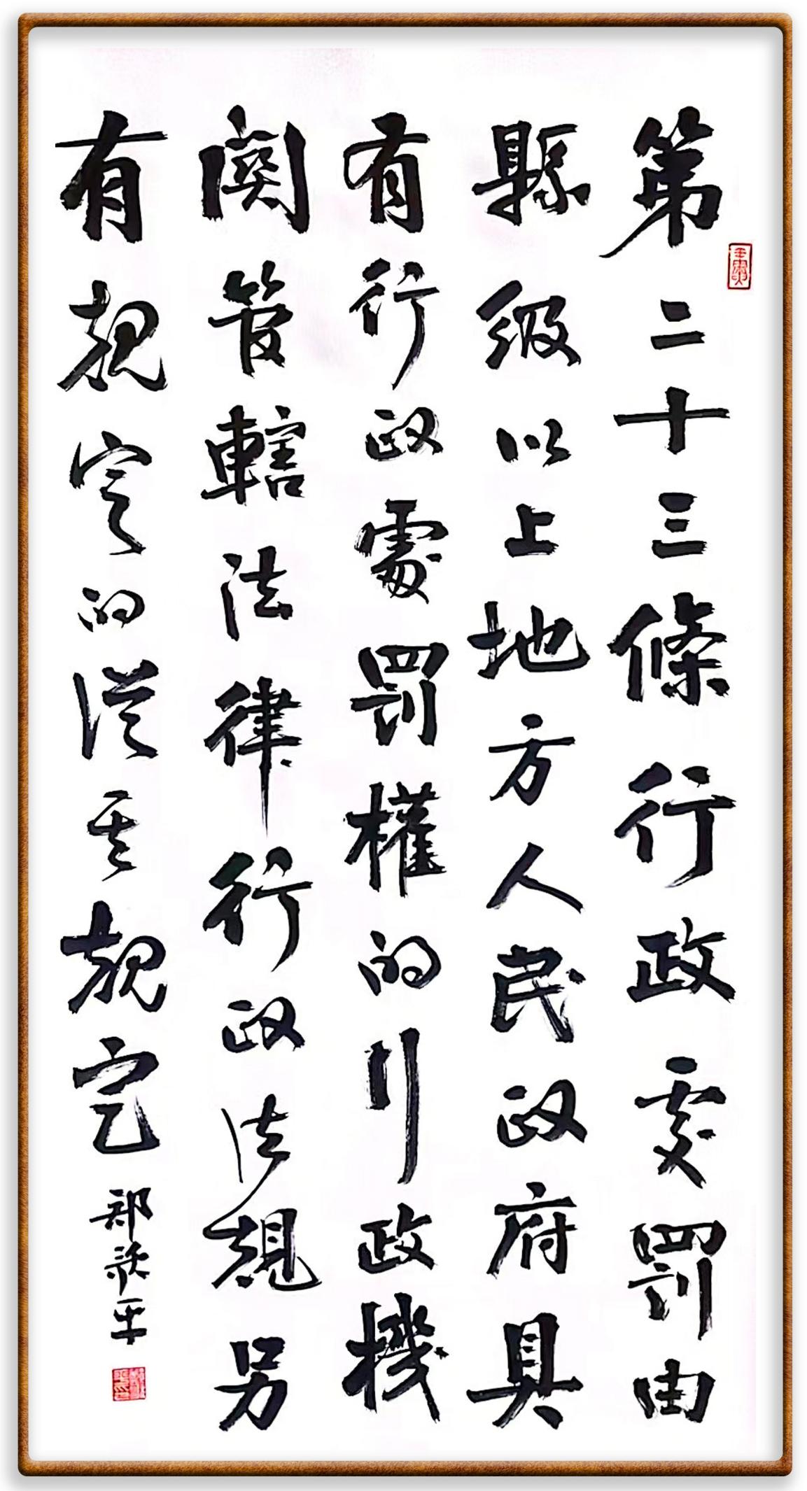 繼《中華人民共和國(guó)民法典》《中華人民共和國(guó)土地管理法》《中華人民共和國(guó)土地管理法實(shí)施條例》《中華人民共和國(guó)法律援助法》之后,法治日?qǐng)?bào)社聯(lián)合北京市司法局、北京書法家協(xié)會(huì),將筆端對(duì)準(zhǔn)《中華人民共和國(guó)憲法》和《中華人民共和國(guó)行政處罰法》。