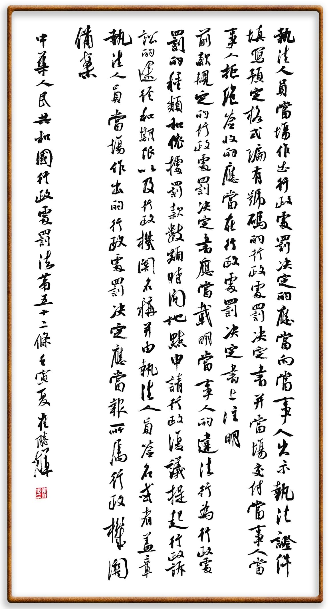 繼《中華人民共和國(guó)民法典》《中華人民共和國(guó)土地管理法》《中華人民共和國(guó)土地管理法實(shí)施條例》《中華人民共和國(guó)法律援助法》之后,法治日?qǐng)?bào)社聯(lián)合北京市司法局、北京書(shū)法家協(xié)會(huì),將筆端對(duì)準(zhǔn)《中華人民共和國(guó)憲法》和《中華人民共和國(guó)行政處罰法》。