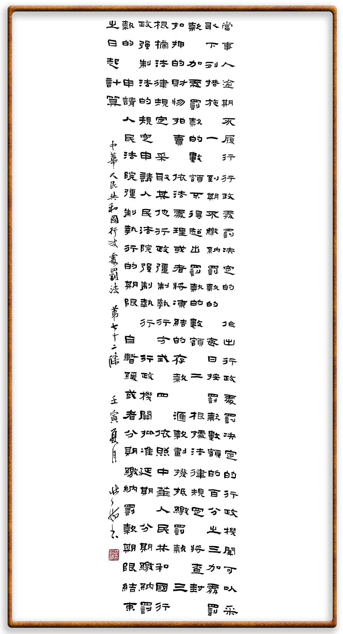 繼《中華人民共和國民法典》《中華人民共和國土地管理法》《中華人民共和國土地管理法實施條例》《中華人民共和國法律援助法》之后,法治日報社聯(lián)合北京市司法局、北京書法家協(xié)會,將筆端對準《中華人民共和國憲法》和《中華人民共和國行政處罰法》。