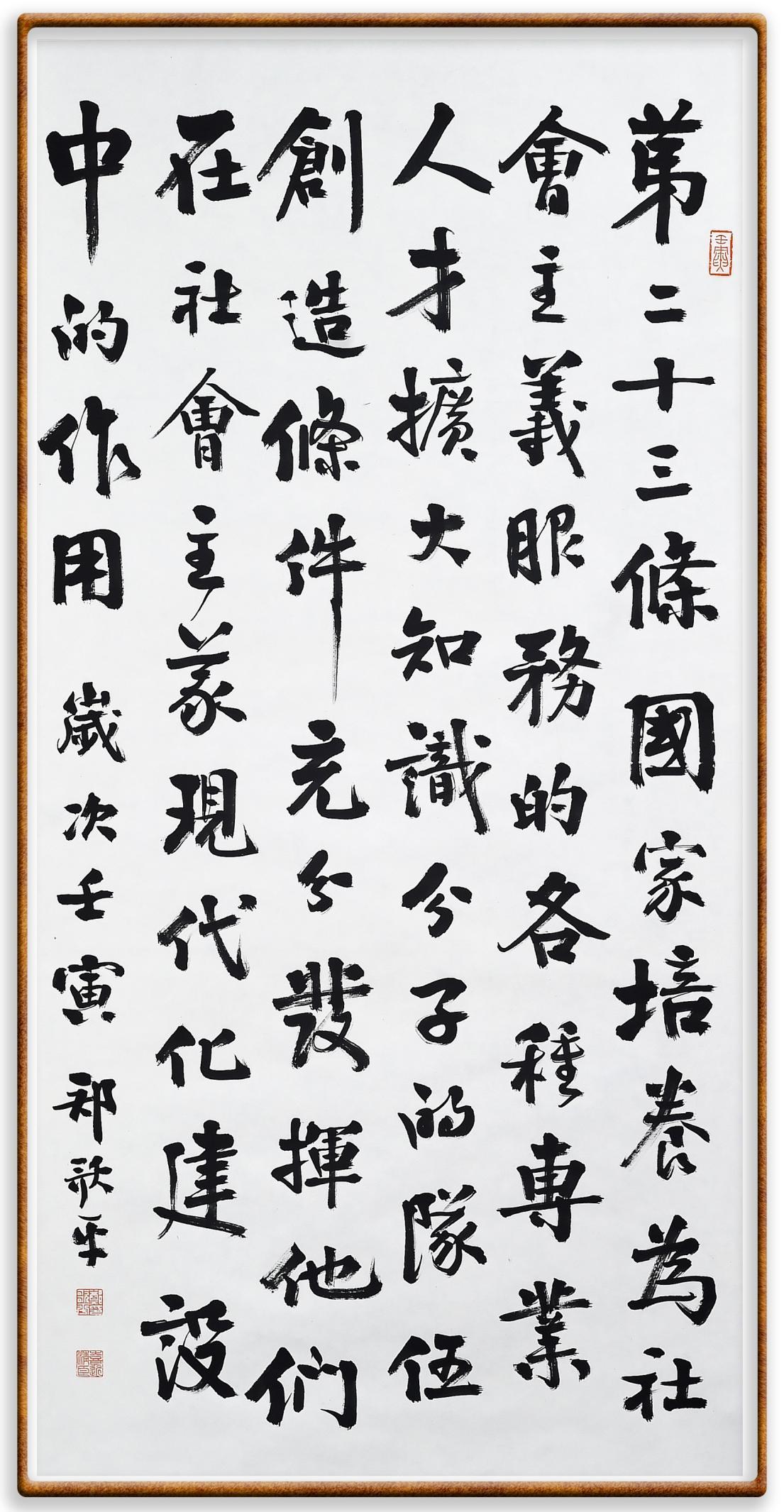 繼《中華人民共和國(guó)民法典》《中華人民共和國(guó)土地管理法》《中華人民共和國(guó)土地管理法實(shí)施條例》《中華人民共和國(guó)法律援助法》之后,法治日?qǐng)?bào)社聯(lián)合北京市司法局、北京市書法家協(xié)會(huì),將筆端對(duì)準(zhǔn)《中華人民共和國(guó)憲法》和《中華人民共和國(guó)行政處罰法》。