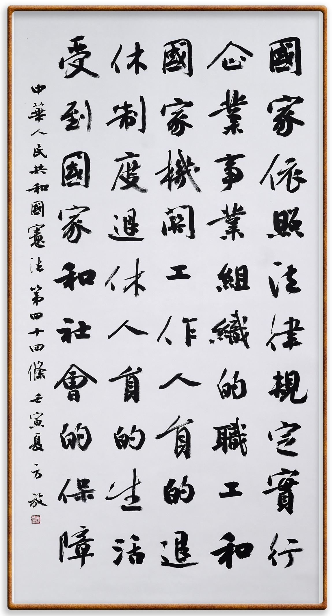 繼《中華人民共和國(guó)民法典》《中華人民共和國(guó)土地管理法》《中華人民共和國(guó)土地管理法實(shí)施條例》《中華人民共和國(guó)法律援助法》之后,法治日?qǐng)?bào)社聯(lián)合北京市司法局、北京市書(shū)法家協(xié)會(huì),將筆端對(duì)準(zhǔn)《中華人民共和國(guó)憲法》和《中華人民共和國(guó)行政處罰法》。