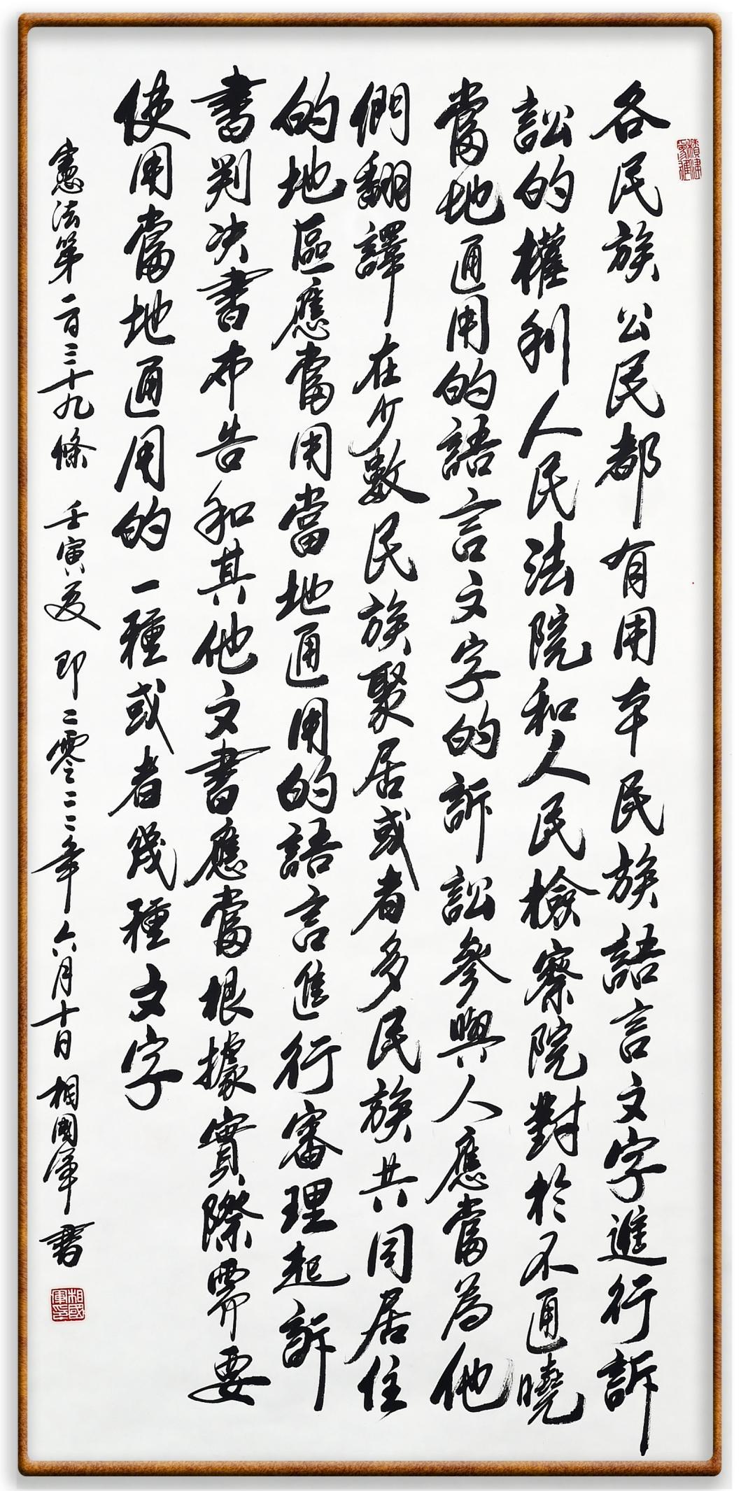 繼《中華人民共和國民法典》《中華人民共和國土地管理法》《中華人民共和國土地管理法實(shí)施條例》《中華人民共和國法律援助法》之后,法治日報社聯(lián)合北京市司法局、北京書法家協(xié)會,將筆端對準(zhǔn)《中華人民共和國憲法》和《中華人民共和國行政處罰法》。