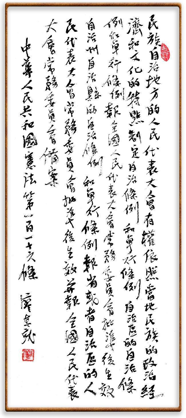 繼《中華人民共和國民法典》《中華人民共和國土地管理法》《中華人民共和國土地管理法實(shí)施條例》《中華人民共和國法律援助法》之后,法治日?qǐng)?bào)社聯(lián)合北京市司法局、北京書法家協(xié)會(huì),將筆端對(duì)準(zhǔn)《中華人民共和國憲法》和《中華人民共和國行政處罰法》。