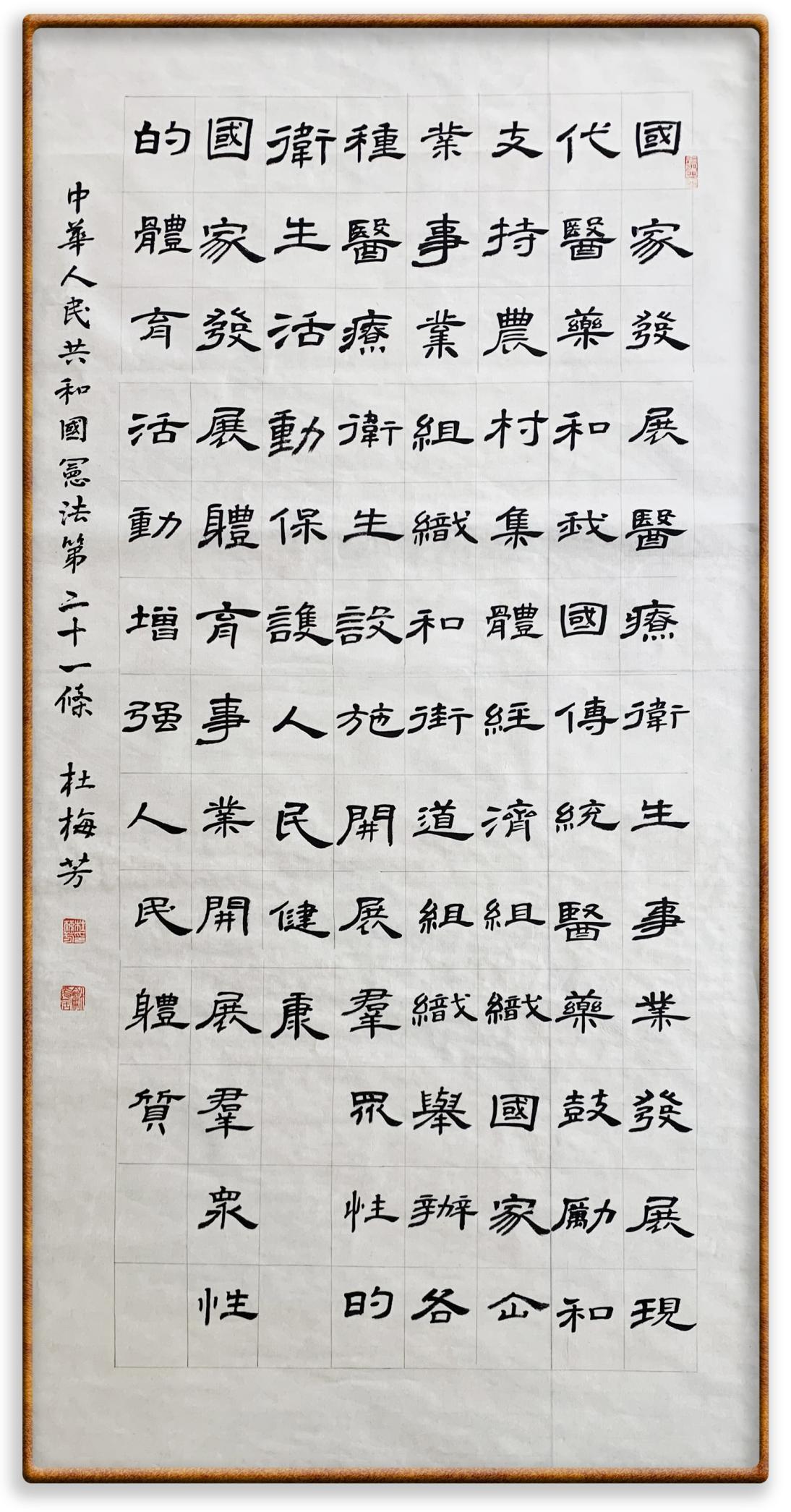 繼《中華人民共和國民法典》《中華人民共和國土地管理法》《中華人民共和國土地管理法實施條例》《中華人民共和國法律援助法》之后,法治日報社聯(lián)合北京市司法局、北京書法家協(xié)會,將筆端對準(zhǔn)《中華人民共和國憲法》和《中華人民共和國行政處罰法》。