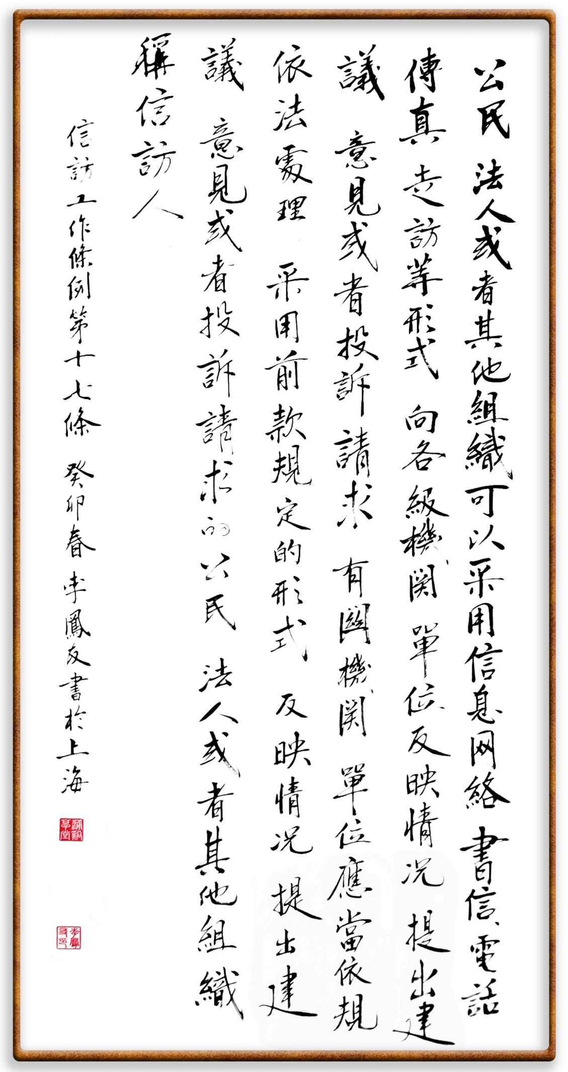 李鳳友,上海市信訪辦來(lái)訪協(xié)調(diào)處四級(jí)調(diào)研員,中國(guó)硬筆書(shū)法協(xié)會(huì)會(huì)員。