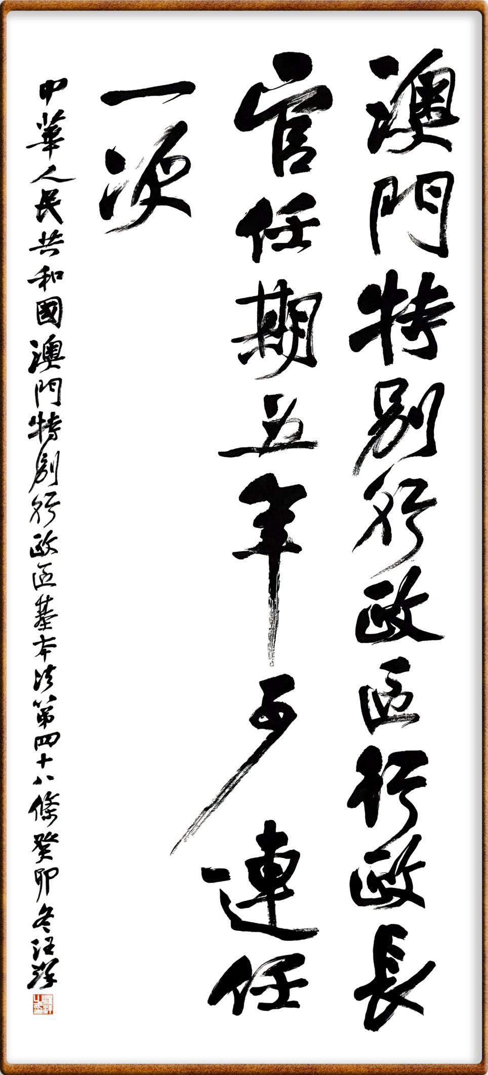 澳門基本法第四十八條 澳門特別行政區(qū)行政長官任期五年,可連任一次。