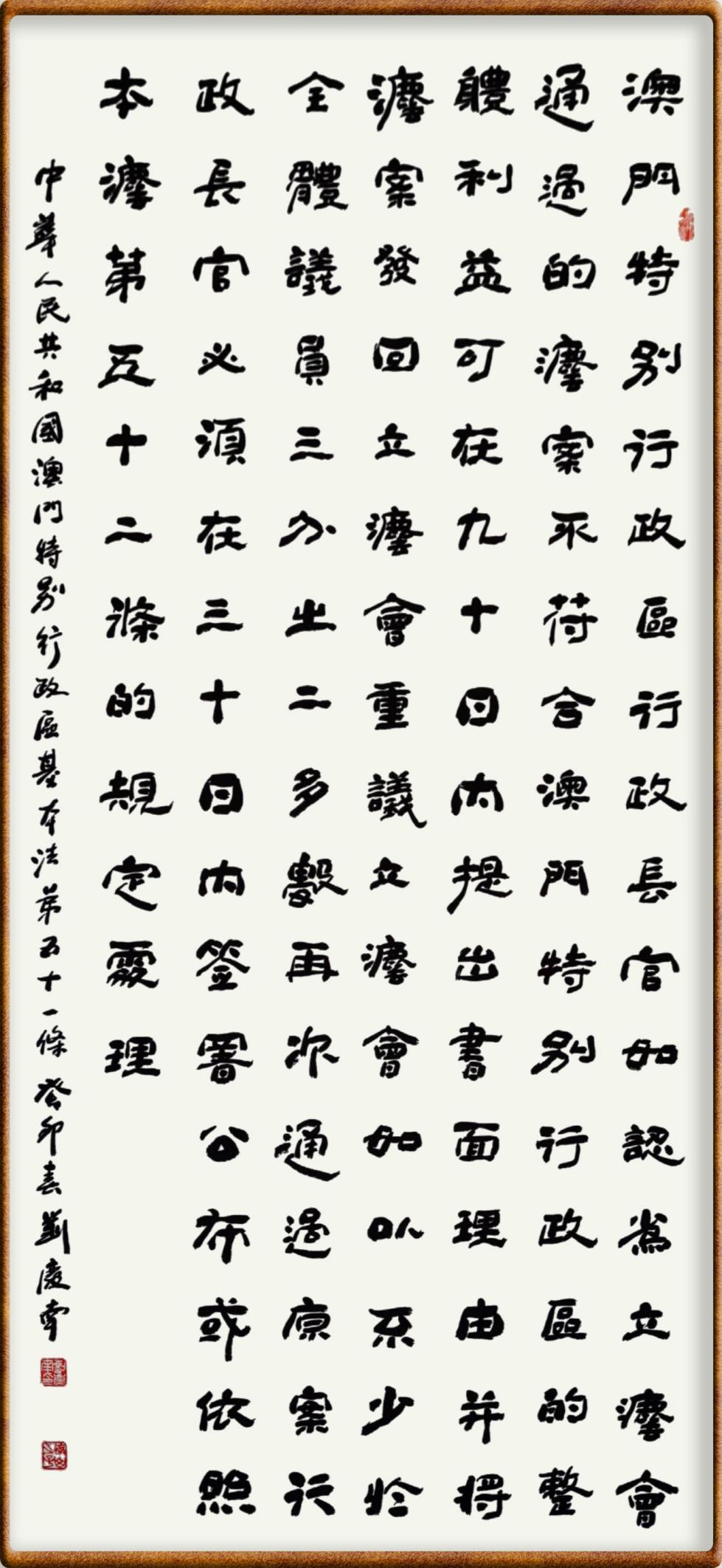 澳門基本法第五十一條 澳門特別行政區(qū)行政長(zhǎng)官如認(rèn)為立法會(huì)通過(guò)的法案不符合澳門特別行政區(qū)的整體利益,可在九十日內(nèi)提出書面理由并將法案發(fā)回立法會(huì)重議。立法會(huì)如以不少于全體議員三分之二多數(shù)再次通過(guò)原案,行政長(zhǎng)官必須在三十日內(nèi)簽署公布或依照本法第五十二條的規(guī)定處理。
