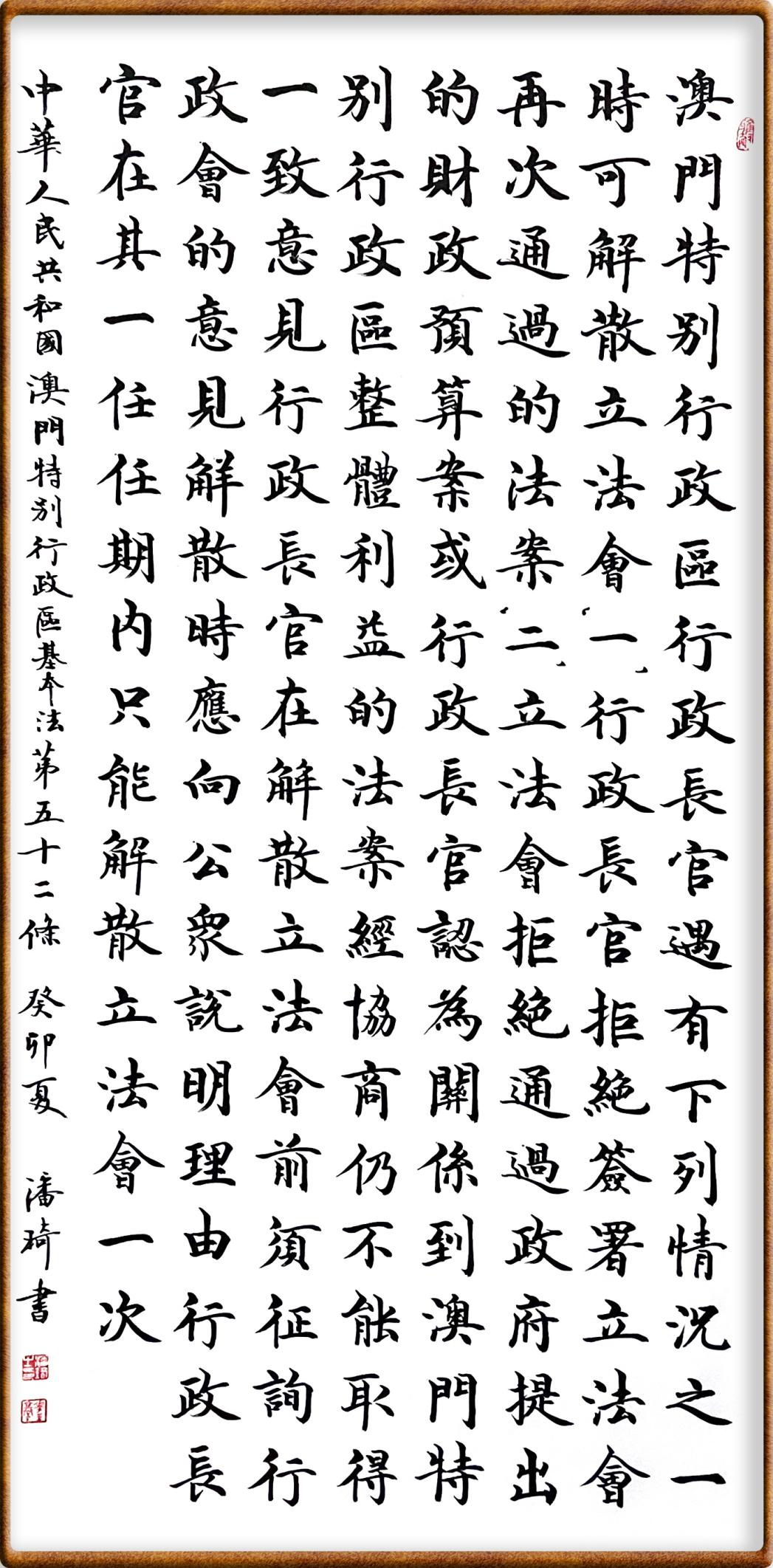 澳門基本法第五十二條 澳門特別行政區(qū)行政長(zhǎng)官遇有下列情況之一時(shí),可解散立法會(huì):