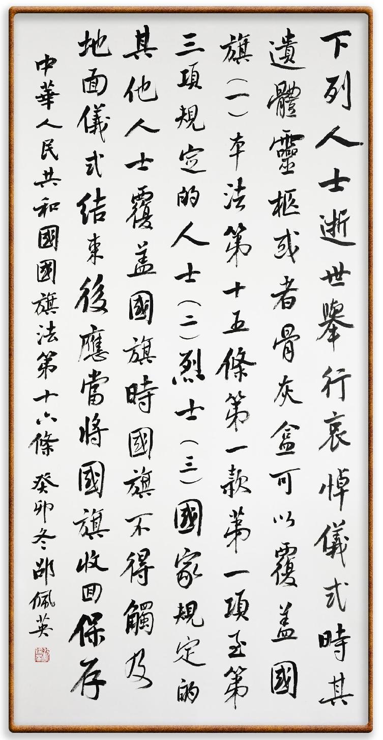 覆蓋國(guó)旗時(shí),國(guó)旗不得觸及地面,儀式結(jié)束后應(yīng)當(dāng)將國(guó)旗收回保存。