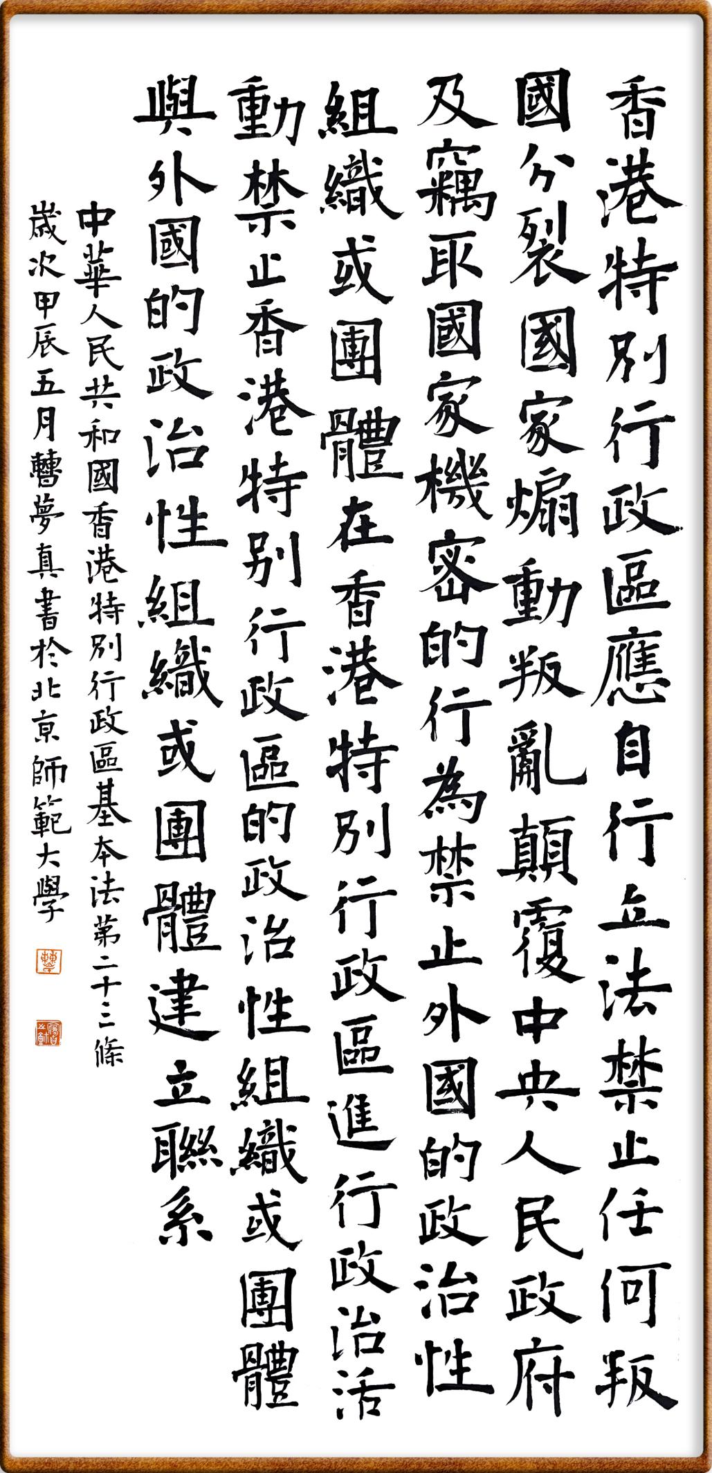 香港基本法第二十三條 香港特別行政區(qū)應自行立法禁止任何叛國、分裂國家、煽動叛亂、顛覆中央人民政府及竊取國家機密的行為,禁止外國的政治性組織或團體在香港特別行政區(qū)進行政治活動,禁止香港特別行政區(qū)的政治性組織或團體與外國的政治性組織或團體建立聯(lián)系。