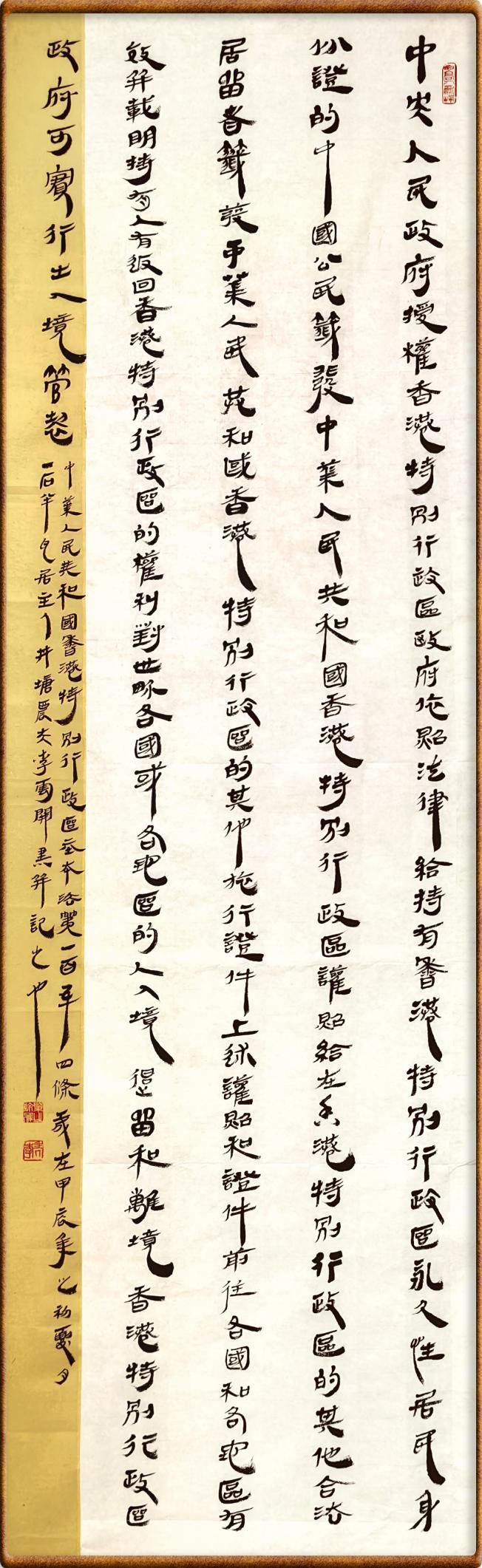 香港基本法第一百五十四條 中央人民政府授權香港特別行政區(qū)政府依照法律給持有香港特別行政區(qū)永久性居民身份證的中國公民簽發(fā)中華人民共和國香港特別行政區(qū)護照,給在香港特別行政區(qū)的其他合法居留者簽發(fā)中華人民共和國香港特別行政區(qū)的其他旅行證件。上述護照和證件,前往各國和各地區(qū)有效,并載明持有人有返回香港特別行政區(qū)的權利。