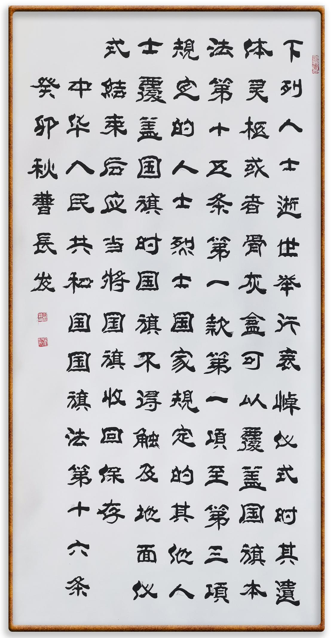 國旗法第十六條 下列人士逝世,舉行哀悼儀式時,其遺體、靈柩或者骨灰盒可以覆蓋國旗: