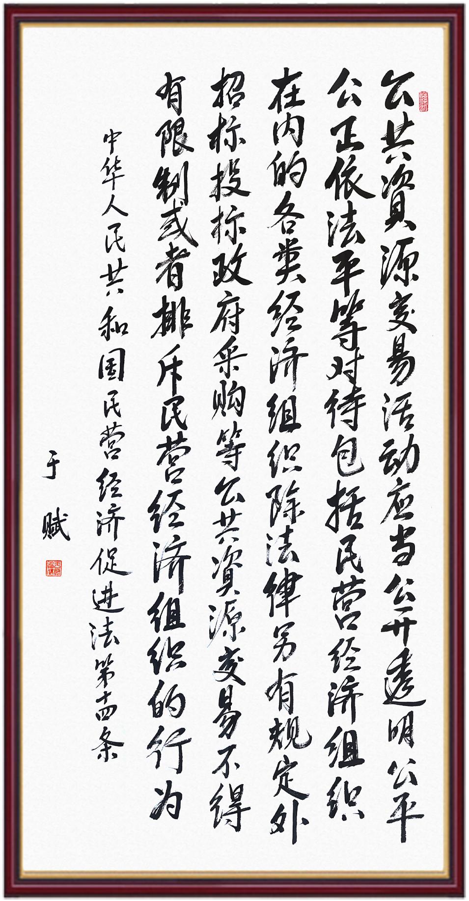 《中華人民共和國民營經(jīng)濟促進法》自今年5月20日起施行。作為我國首部專門關(guān)于民營經(jīng)濟發(fā)展的基礎(chǔ)性法律,民營經(jīng)濟促進法將支持和保障民營經(jīng)濟發(fā)展的法律制度融入中國特色社會主義法律體系,具有重大的法治意義,為促進民營經(jīng)濟持續(xù)、健康、高質(zhì)量發(fā)展提供了堅實的法治保障。為更好地學(xué)習(xí)、宣傳、貫徹這部法律,法治日報社聯(lián)合司法部普法與依法治理局,開展“‘書·法’系列活動之書寫《中華人民共和國民營經(jīng)濟促進法》”活動。