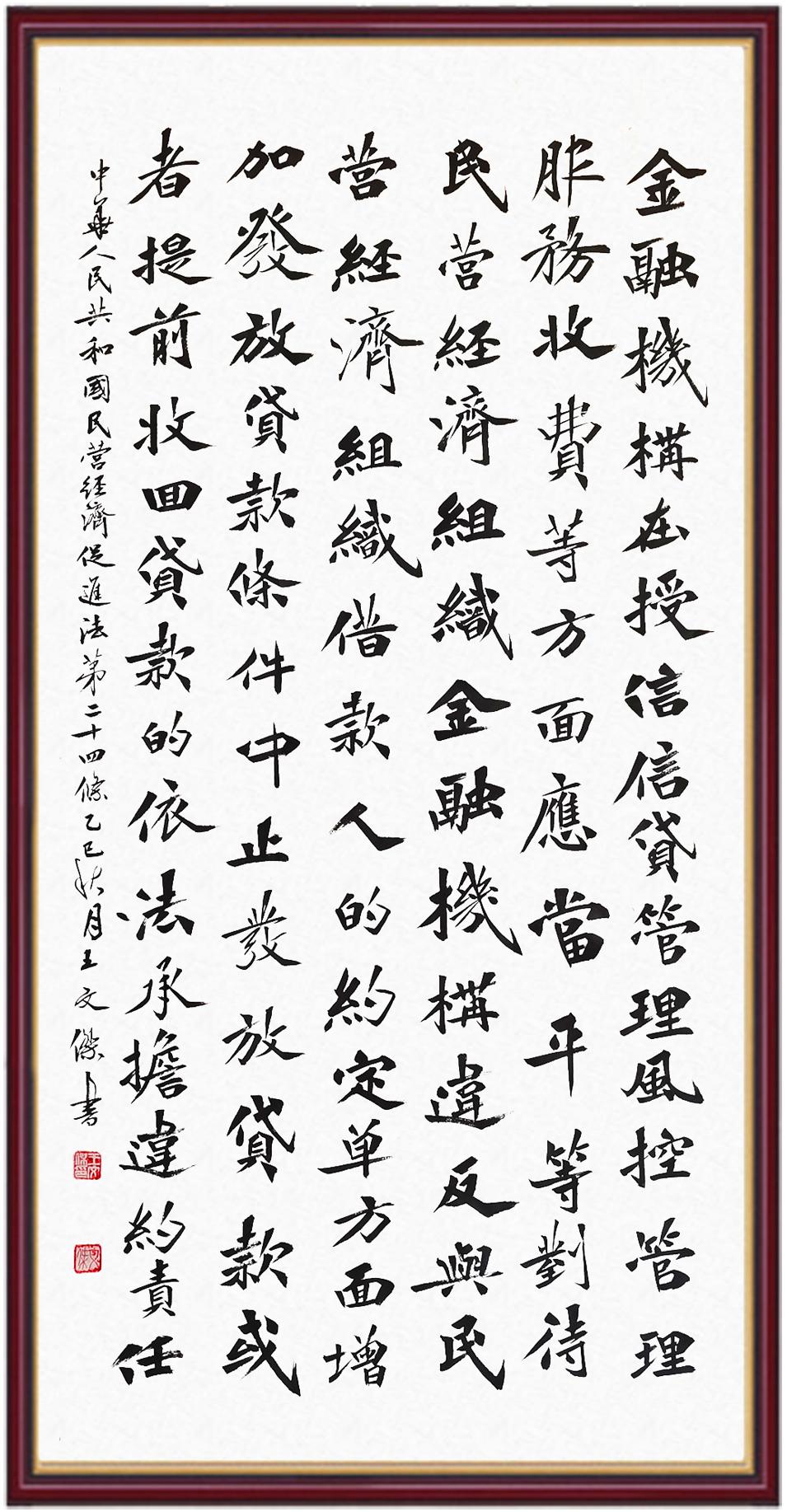 《中華人民共和國民營經(jīng)濟(jì)促進(jìn)法》自今年5月20日起施行。作為我國首部專門關(guān)于民營經(jīng)濟(jì)發(fā)展的基礎(chǔ)性法律,民營經(jīng)濟(jì)促進(jìn)法將支持和保障民營經(jīng)濟(jì)發(fā)展的法律制度融入中國特色社會主義法律體系,具有重大的法治意義,為促進(jìn)民營經(jīng)濟(jì)持續(xù)、健康、高質(zhì)量發(fā)展提供了堅實的法治保障。為更好地學(xué)習(xí)、宣傳、貫徹這部法律,法治日報社聯(lián)合司法部普法與依法治理局,開展“‘書·法’系列活動之書寫《中華人民共和國民營經(jīng)濟(jì)促進(jìn)法》”活動。