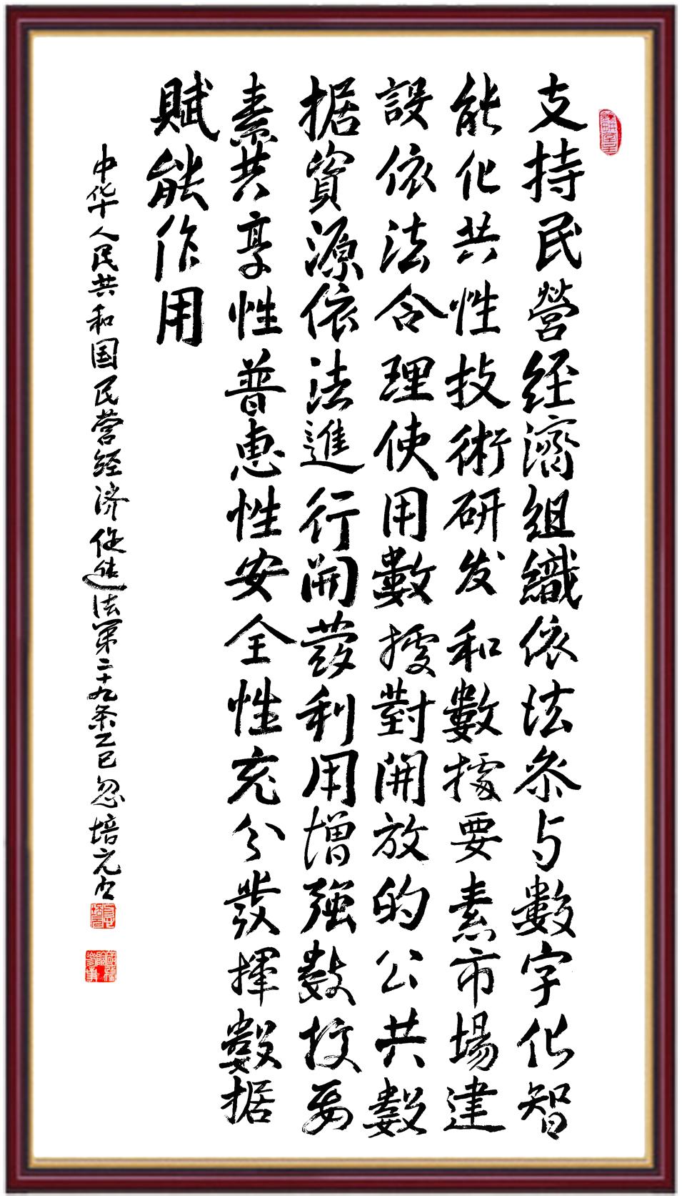 《中華人民共和國(guó)民營(yíng)經(jīng)濟(jì)促進(jìn)法》自今年5月20日起施行。作為我國(guó)首部專(zhuān)門(mén)關(guān)于民營(yíng)經(jīng)濟(jì)發(fā)展的基礎(chǔ)性法律,民營(yíng)經(jīng)濟(jì)促進(jìn)法將支持和保障民營(yíng)經(jīng)濟(jì)發(fā)展的法律制度融入中國(guó)特色社會(huì)主義法律體系,具有重大的法治意義,為促進(jìn)民營(yíng)經(jīng)濟(jì)持續(xù)、健康、高質(zhì)量發(fā)展提供了堅(jiān)實(shí)的法治保障。為更好地學(xué)習(xí)、宣傳、貫徹這部法律,法治日?qǐng)?bào)社聯(lián)合司法部普法與依法治理局,開(kāi)展“‘書(shū)·法’系列活動(dòng)之書(shū)寫(xiě)《中華人民共和國(guó)民營(yíng)經(jīng)濟(jì)促進(jìn)法》”活動(dòng)。