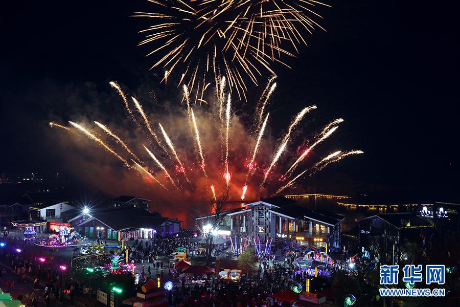 1月31日晚,煙花光影水秀在天河潭景區(qū)上演。新華網(wǎng) 盧志佳 攝