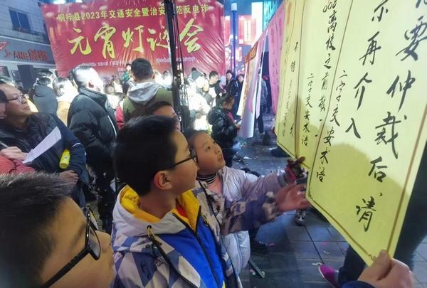 2月4日晚,由桐梓縣公安局主辦、縣燈謎協(xié)會協(xié)辦的第15屆公安元宵燈謎晚會在縣城步行街舉行。