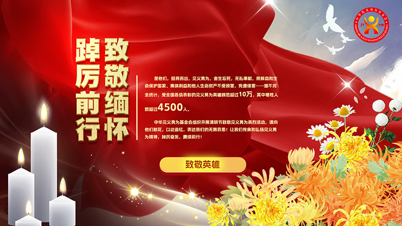 為學習貫徹落實習近平總書記關于加強見義勇為工作,建設更高水平平安中國的重要指示精神,學習貫徹落實習近平總書記關于烈士褒揚工作的重要指示精神,營造致敬見義勇為英烈、學習見義勇為英烈、積極參與見義勇為的濃厚社會氛圍,讓全社會充滿正氣、正義。中華見義勇為基金會于4月1日至10日清明節(jié)期間,在中國長安網、中央政法委長安劍微信公眾號開展“致敬緬懷、踔厲前行——2023年清明節(jié)向見義勇為英烈和犧牲人員致敬活動”。