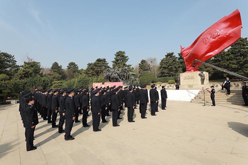 圖為公安民警代表擦拭墓碑,敬獻(xiàn)鮮花,表達(dá)對(duì)烈士的哀思。