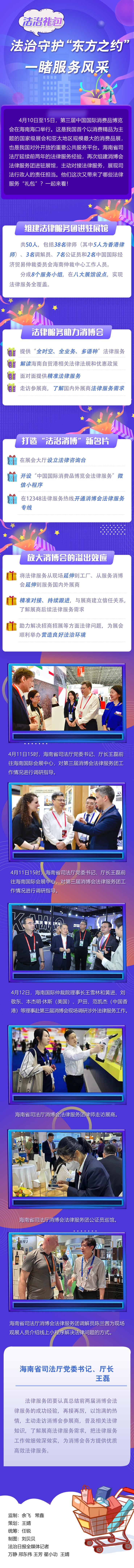 4月10日至15日,第三屆中國國際消費品博覽會在海南??谂e行。這是我國首個以消費精品為主題的國家級展會和亞太地區(qū)規(guī)模最大的消費品展,也是我國對外開放的重要公共服務平臺。海南省司法廳延續(xù)前兩年的法律服務經(jīng)驗,再次組建消博會法律服務團進駐展館,主動對接司法需求,展現(xiàn)司法行政人的責任擔當。他們這次又帶來了哪些法律服務“禮包”?一起來看!