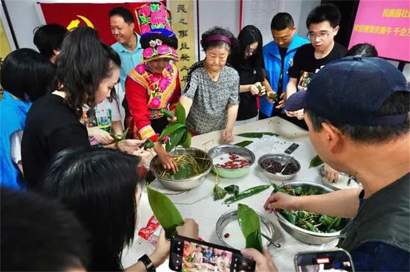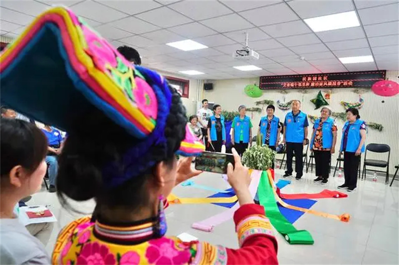 社區(qū)通過(guò)傳統(tǒng)端午祈福儀式、樓門掛艾草、制作端午避瘟藥包等形式,讓居民進(jìn)一步了解和感受中華傳統(tǒng)節(jié)日文化。