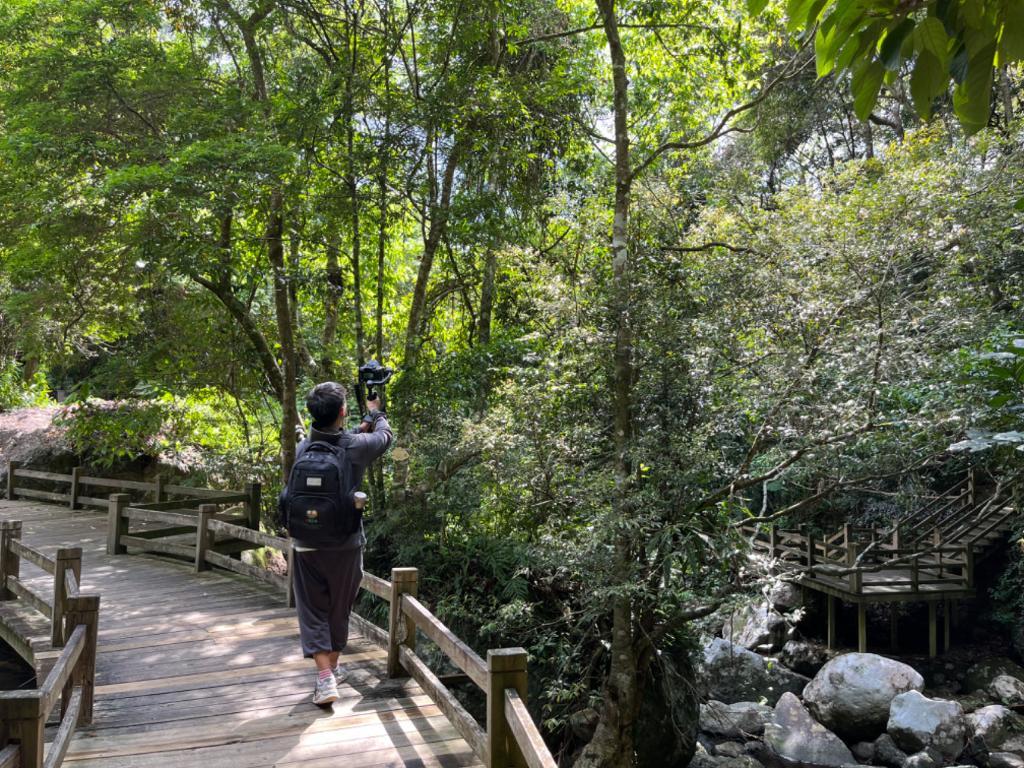 游客在海南熱帶雨林國家公園五指山片區(qū)游覽、拍攝視頻。新華社記者羅江 攝
