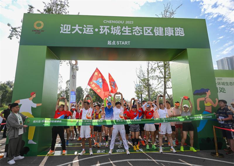 新華社成都7月16日電(記者李力可)在成都第31屆世界大學(xué)生夏季運(yùn)動會開幕倒計時12天之際,16日上午,成都全市約1400名各行各業(yè)市民代表、運(yùn)動達(dá)人在成都環(huán)城生態(tài)區(qū)一級綠道開展“迎大運(yùn)——環(huán)城生態(tài)區(qū)健康跑”,以運(yùn)動的方式喜迎大運(yùn)會。