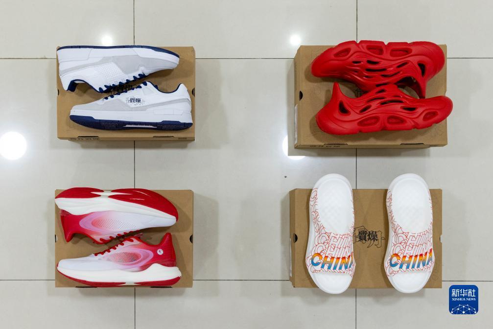 這是7月24日拍攝的第31屆世界大學(xué)生夏季運(yùn)動(dòng)會(huì)中國(guó)代表團(tuán)成員配發(fā)裝備中的不同功能的鞋。新華社記者 沈伯韓 攝