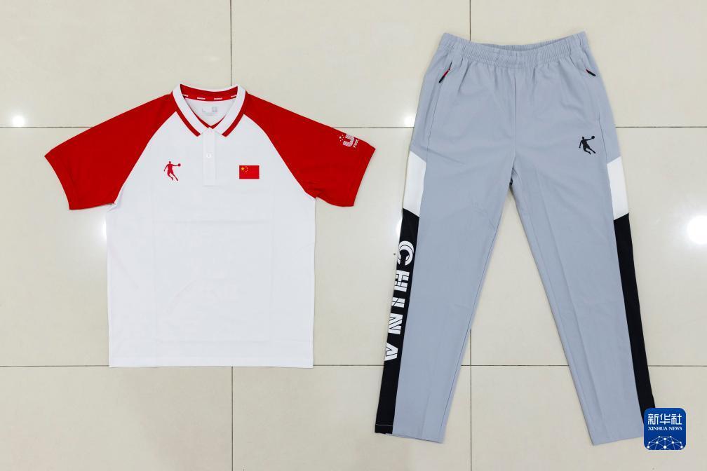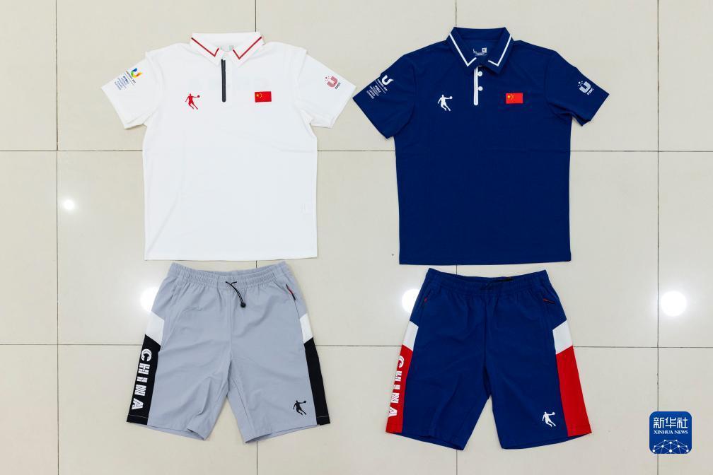 這是7月24日拍攝的第31屆世界大學(xué)生夏季運(yùn)動(dòng)會(huì)中國(guó)代表團(tuán)成員配發(fā)裝備中的POLO短T恤衫和長(zhǎng)褲。新華社記者 沈伯韓 攝