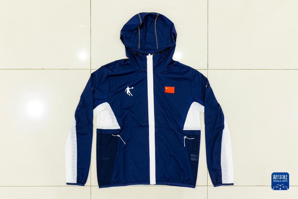 這是7月24日拍攝的第31屆世界大學(xué)生夏季運(yùn)動(dòng)會(huì)中國(guó)代表團(tuán)成員配發(fā)裝備中的梭織單層夾克。新華社記者 沈伯韓 攝