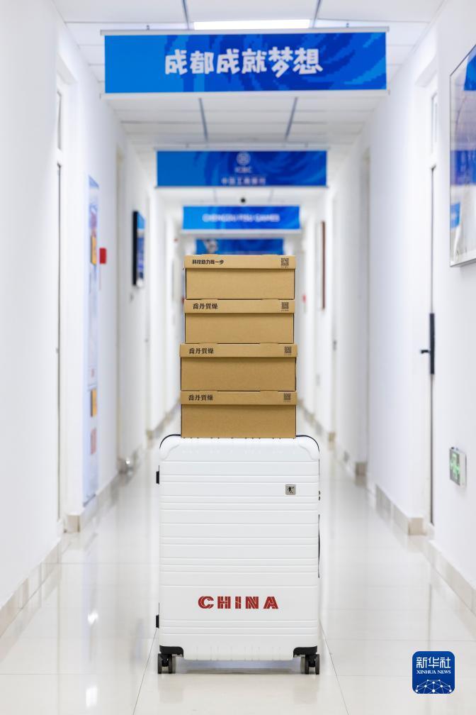 這是7月24日在第31屆世界大學(xué)生夏季運(yùn)動(dòng)會(huì)大運(yùn)村中國(guó)代表團(tuán)駐地拍攝的代表團(tuán)成員配發(fā)裝備。新華社記者 沈伯韓 攝