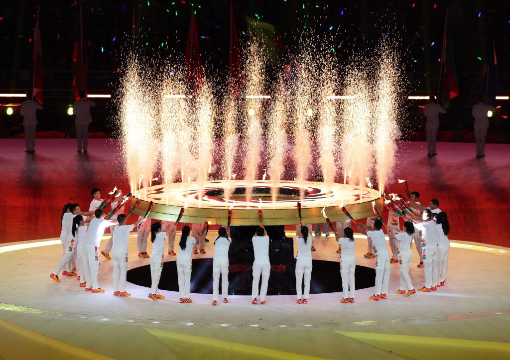 隨著大運(yùn)會主火炬塔被點(diǎn)燃,整個(gè)開幕式被推向高潮。
