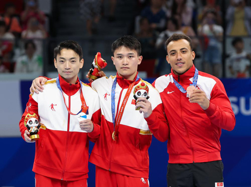 東京奧運會銀牌得主、中國臺北選手李智凱收獲鞍馬金牌,實現(xiàn)大運會鞍馬“三連冠”?!斑@是我的最后一屆世界大學(xué)生運動會,能夠在這次把自己的難度分升到6.5分,對我來說是一個突破與成長,很開心能完成這樣的目標(biāo)?!彼f。