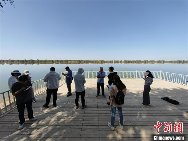 9月1日,“四季看新疆第二季”之“沿著河湖看新疆”主題采訪活動(dòng)采訪團(tuán)走進(jìn)巴音郭楞蒙古自治州尉犁縣羅布淖爾國家濕地公園進(jìn)行采訪。(中新網(wǎng)記者 王小軍 攝)