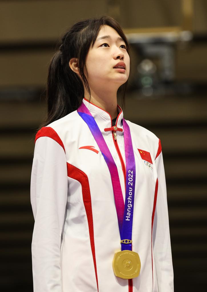 9月24日,冠軍黃雨婷在頒獎(jiǎng)儀式上。新華社記者 單宇琦 攝