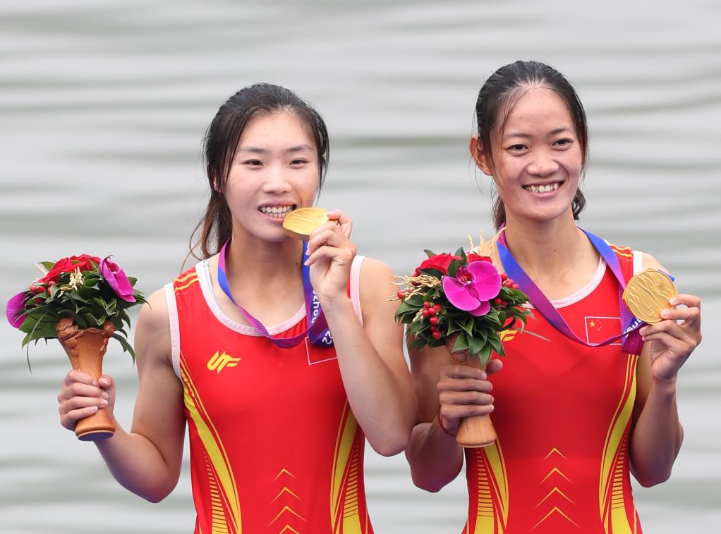 9月24日,鄒佳琪(左)/邱秀萍在頒獎(jiǎng)儀式上。新華社記者 杜瀟逸 攝