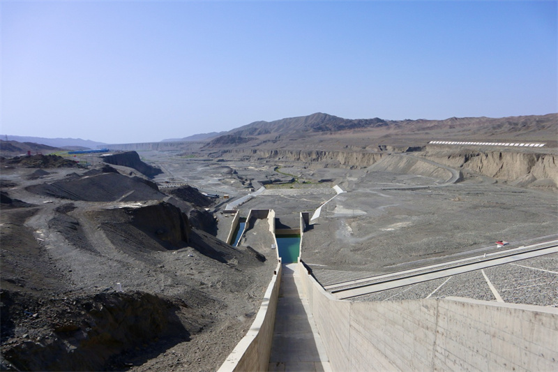 大河沿引水工程主要由攔河大壩,溢洪道、灌溉洞及泄洪放空沖砂兼導(dǎo)流洞組成。(中國日報記者朱立新 攝)