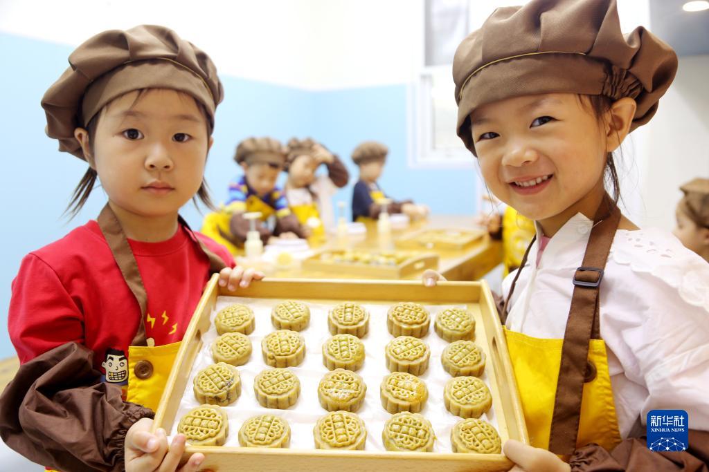 9月26日,在河北省衡水市桃城區(qū)一家幼兒園,孩子們共同制作月餅。