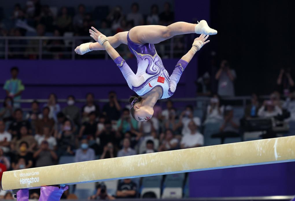 9月27日,左彤在平衡木比賽中。新華社記者 程婷婷 攝