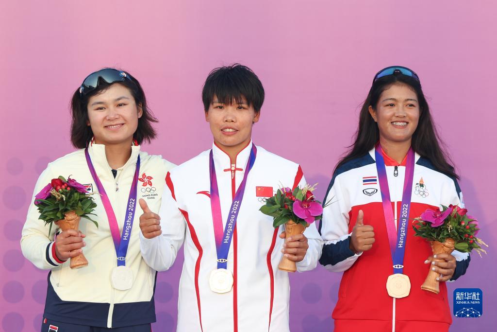 當(dāng)日,杭州亞運(yùn)會帆船項目女子水翼帆板-iQFoil級比賽結(jié)束,中國選手黃先婷獲得冠軍,中國香港選手馬君正和泰國選手阿迪差·洪拉良分獲亞軍和季軍。