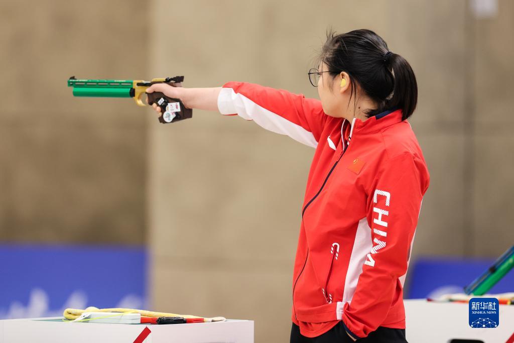 當日,在杭州富陽銀湖體育中心舉行的杭州亞運會射擊項目混合團體10米氣手槍決賽中,中國組合張博文/姜冉馨以16比14戰(zhàn)勝印度組合薩拉布喬特·辛格/迪維婭·塔迪戈爾·蘇巴拉朱,奪得冠軍。