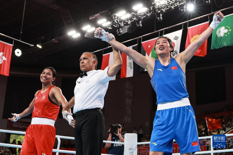 當(dāng)日,在杭州亞運會拳擊項目女子75公斤級決賽中,中國選手李倩戰(zhàn)勝印度選手洛夫利娜·博爾戈哈因,獲得冠軍。