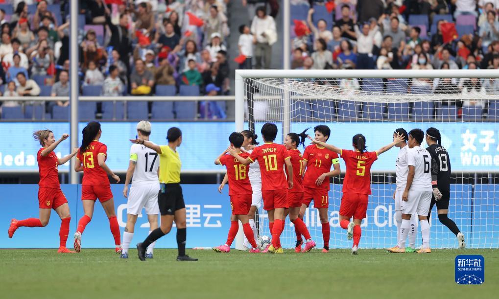 在10月6日舉行的杭州亞運會女足季軍爭奪戰(zhàn)中,中國女足戰(zhàn)勝烏茲別克斯坦女足,獲得銅牌。 (記者:陳地 王浩明 岳冉冉)